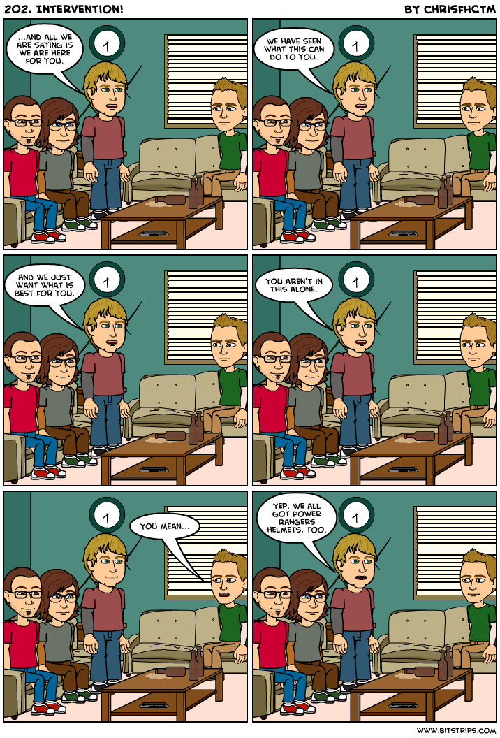 202. Intervention! (Click To Enlarge) Every good friendship needs at least one intervention… right? Share this: Share on X (Opens in new window) X Share on Facebook (Opens in new window) Facebook Like Loading... Related Leave a comment